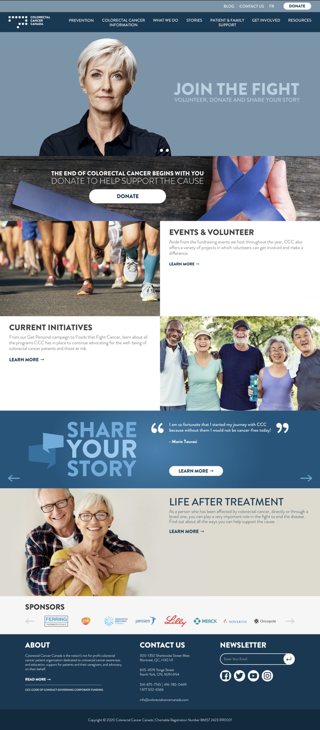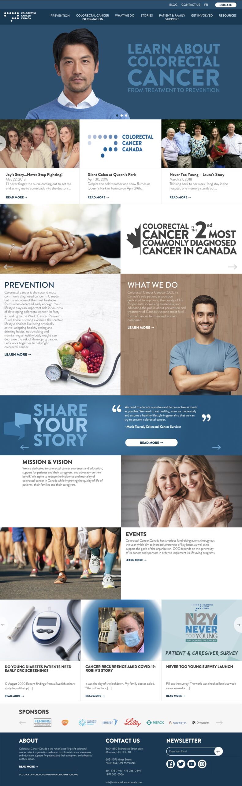 Colorectal Cancer Canada (CCC) is dedicated to raising awareness about colorectal cancer, educating and supporting patients and caregivers, and advocating on their behalf. The goal was to reduce the incidence and mortality of colorectal cancer in Canada while improving the quality of life for patients, their families, and caregivers.
